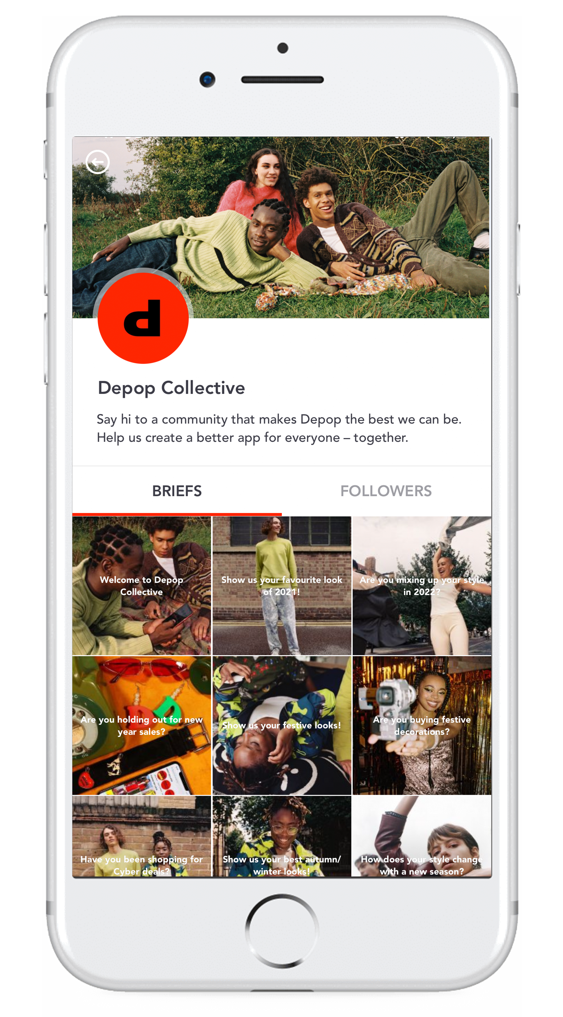 We run multiple virtual co-creation workshops and in-depth interviews with our community to understand what they would like to see from the Depop brand and app in order to promote feelings of safety, authenticity and trust – gaining video, written and image-based responses. At the same time, we launch briefs within the Bulbshare app exploring these notions, and gaining feedback on the Depop app experience.