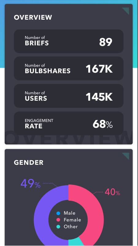 Build briefs and deploy them in minutes across your community - then analyse responses through the Bulbshare dashboard.